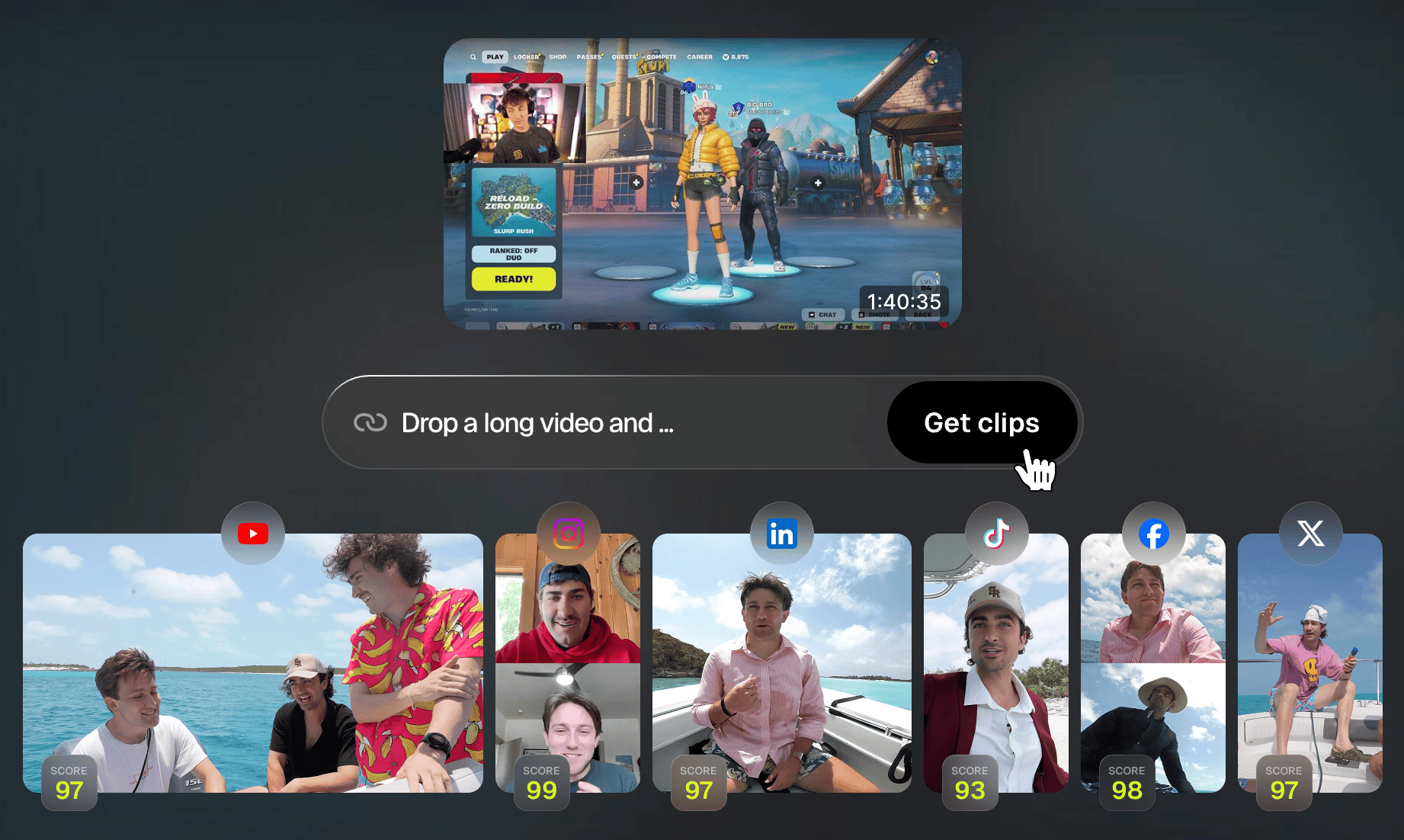 Why it wins: OpusClip understands narrative structure and emotional peaks. The AI identifies hook-worthy moments that work as standalone content, making it ideal for turning one 30-minute video into 10+ scroll-stopping clips.